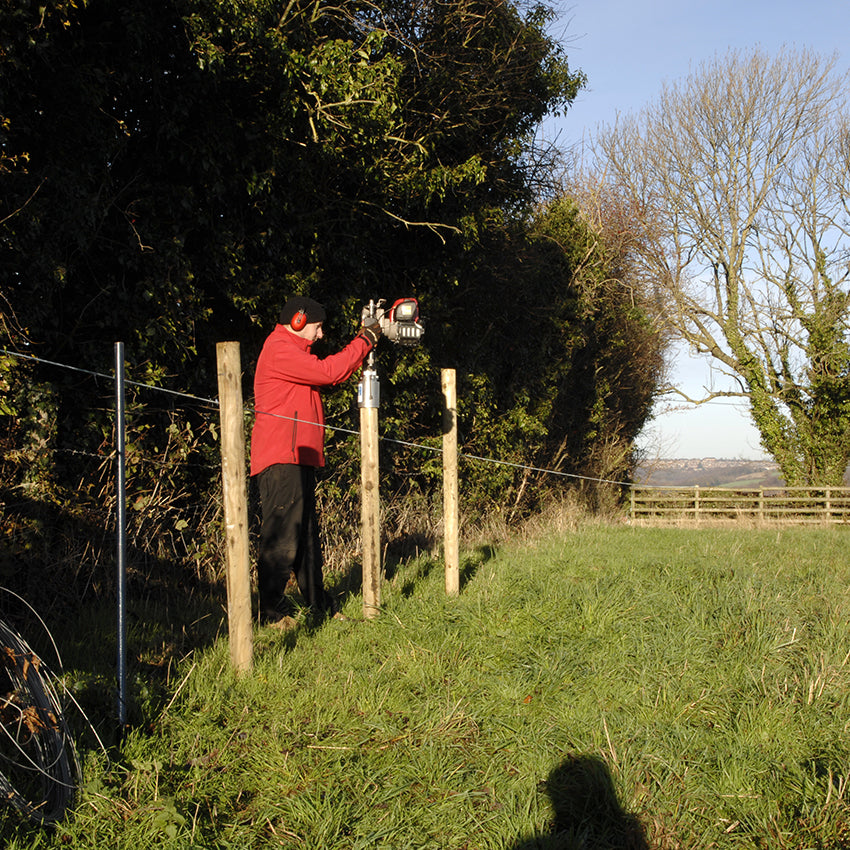The Easy Petrol Post Driver is small, portable, and self contained in a transport box.